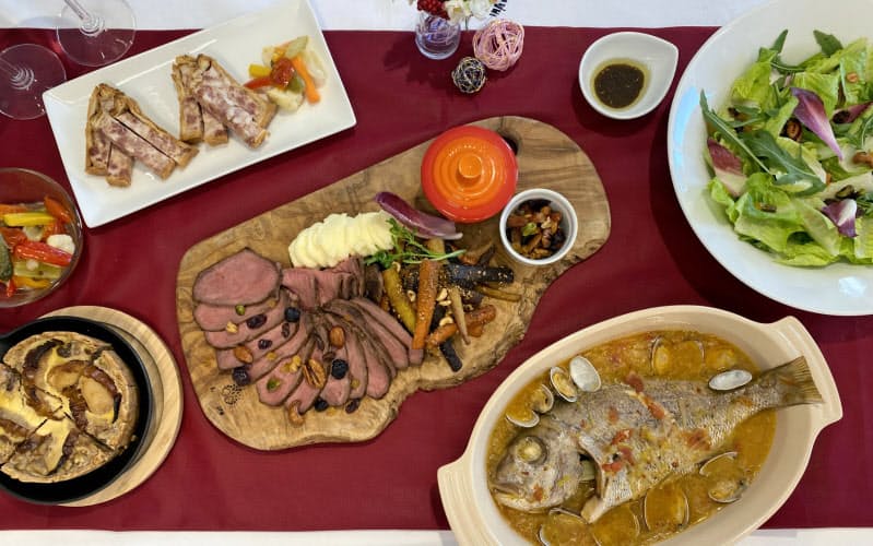 5人のシェフが手掛けた迎春料理「RF1スペシャリティ」では料理を並べて個別に選ぶ「アラカルト方式」の食卓をイメージ。和牛のローストビーフやサラダ、鹿児島県産の天然真鯛(まだい)を使ったアクアパッツァなどを組み合わせた。4~5人前で3万2400円となる。このほか2~3人前の「ブイヤベース鍋セット」(4801円)などを用意する。おせちとは別の楽しみ方ができるという。